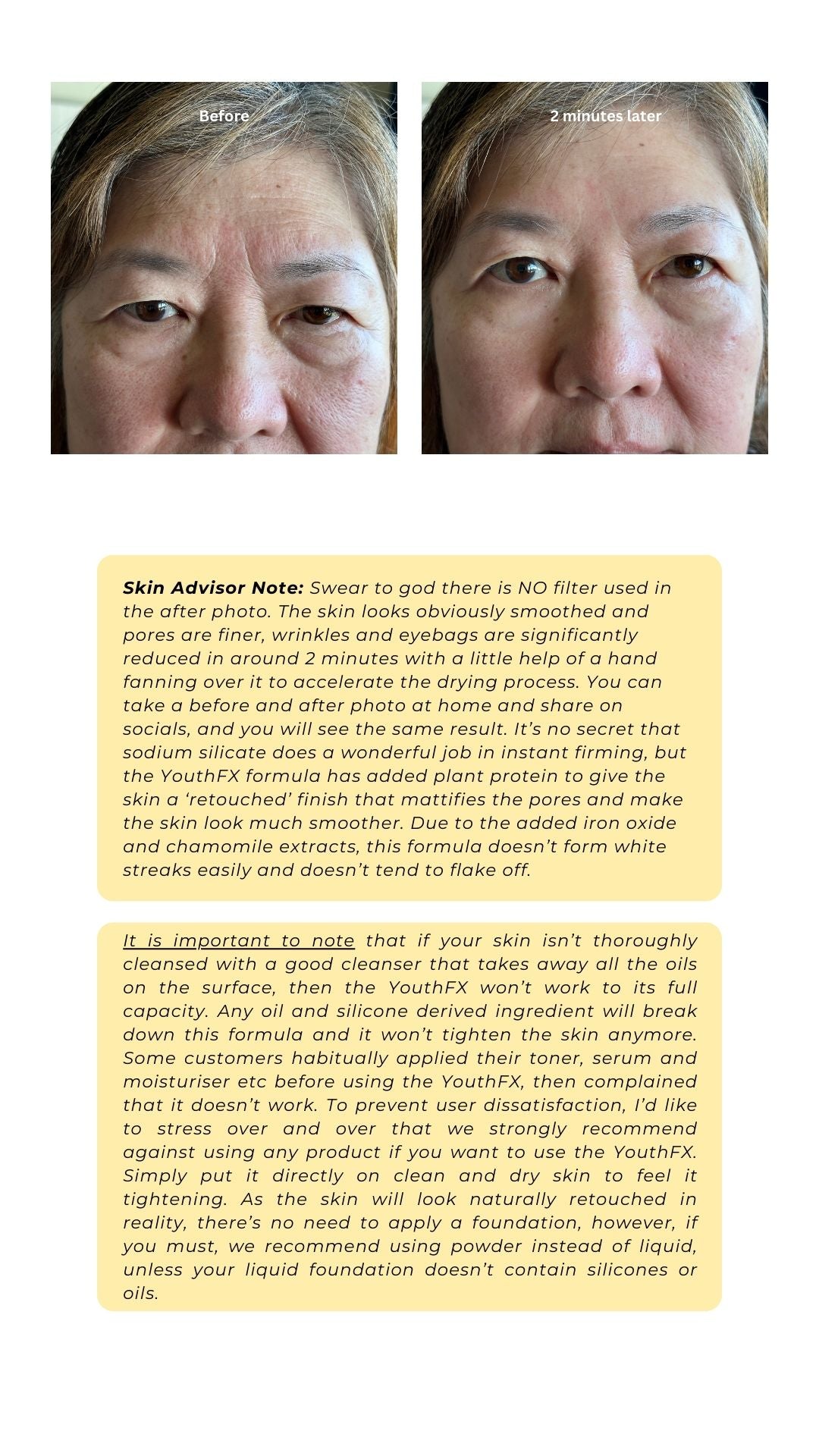 Aesthetic correction through multi-action YoutfhFx Cellular Bonding Factors to smooth the appearance & tighten the skin. Feel the tightening in 2 minutes.