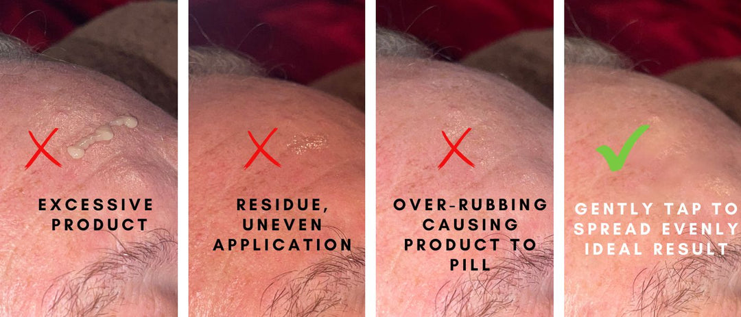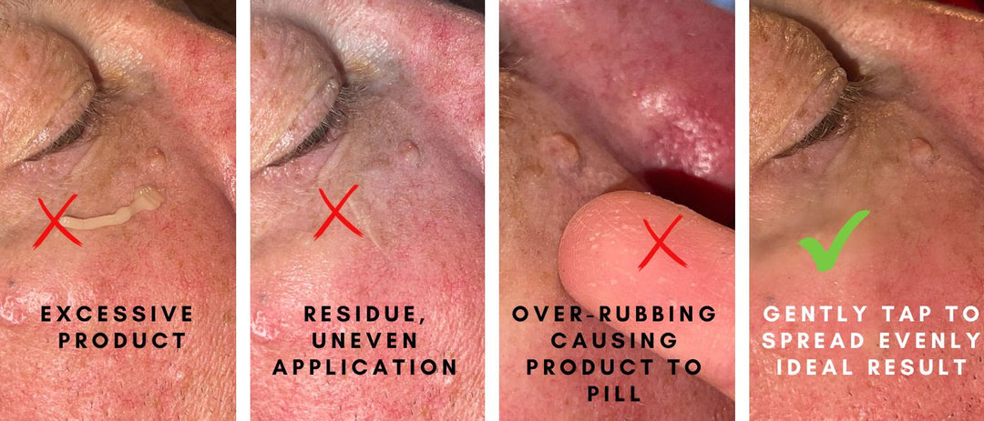Avoid rubbing back and forth on the skin, or the product may pill off.