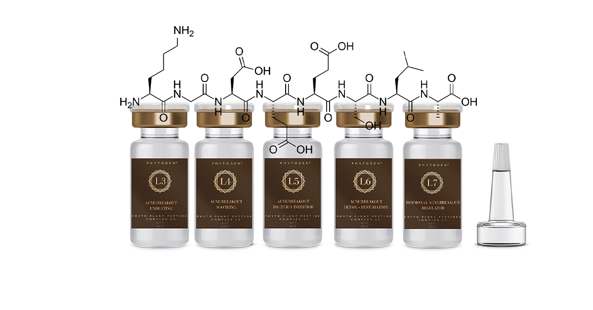 PHYTOGEN L Series contain IL-1Ra and other acne targeting anti-inflammatory and inhibiting factors. PHYTOGEN© L3-L7 factors provide the entire range of solutions for people living with acne vulgaris. L3-L4 provide sufficient IL-1Ra to inhibit acne vulgaris, while L5 inhibits bacteria growth, and L6 restores normal skin cells to clear pores and reduce pigmentation and scarring, and then L7 regulates the skin's hormonal behaviors to ultimately control breakout.